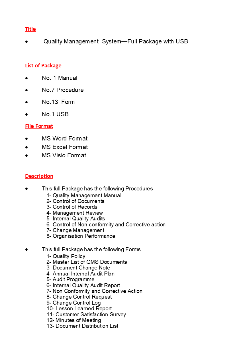 ISO 9001 Kit - Quality Management System - Full Package + USB Backup