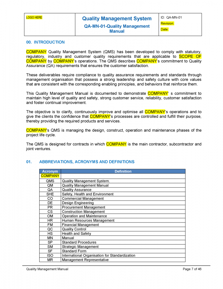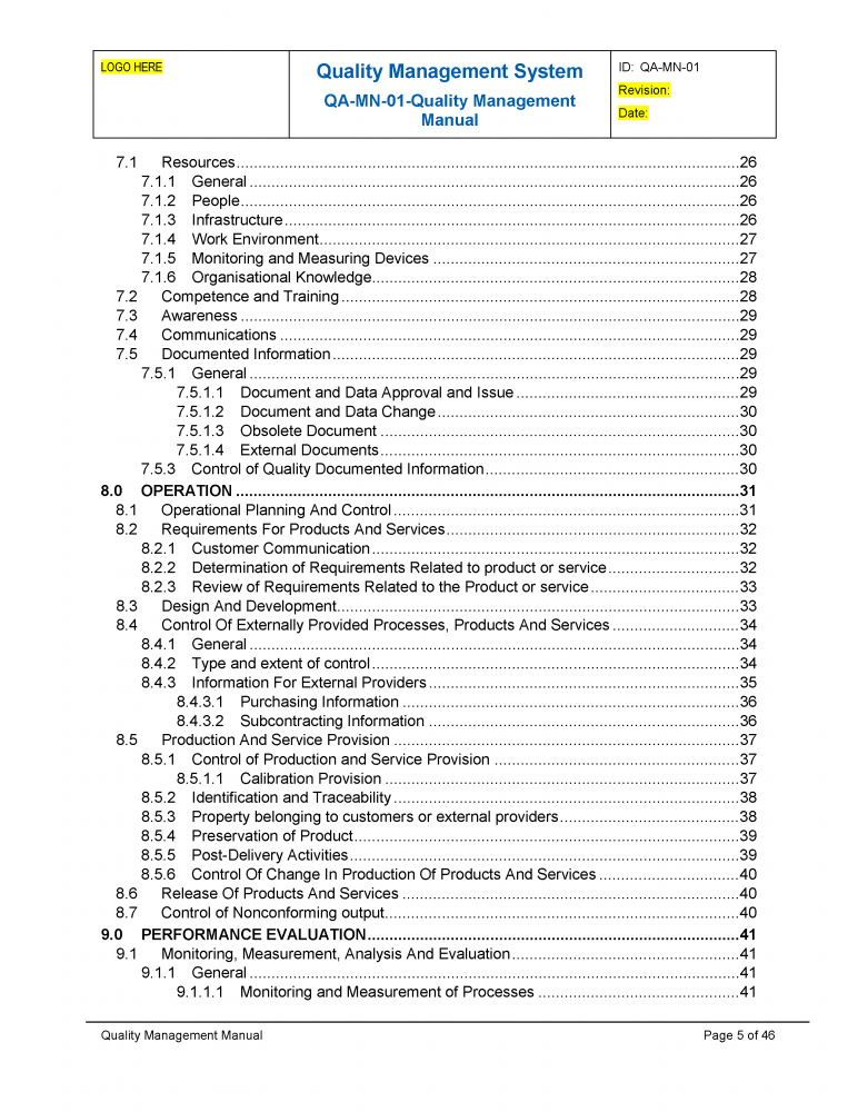 ISO 9001 Kit - Quality Manual